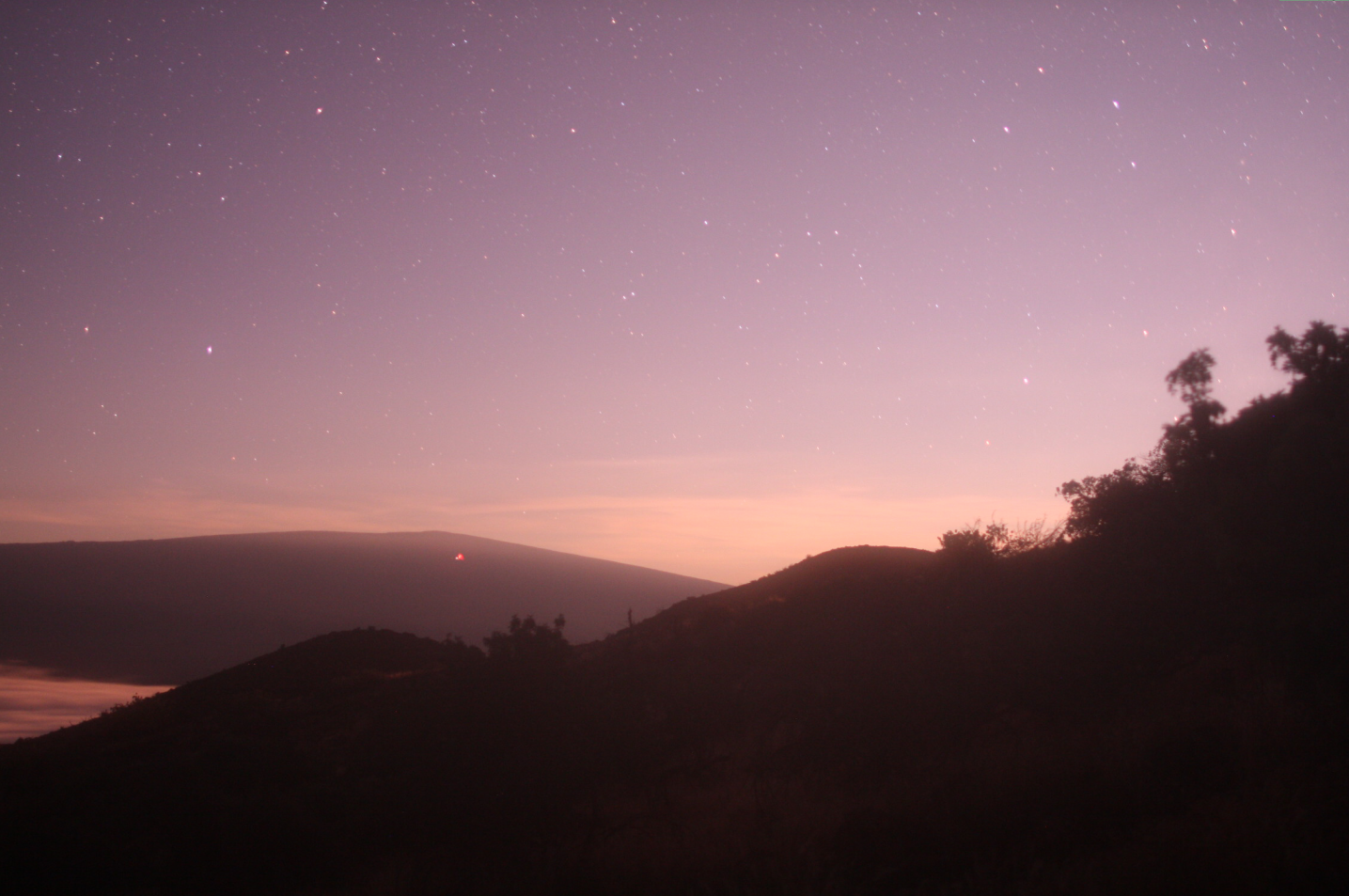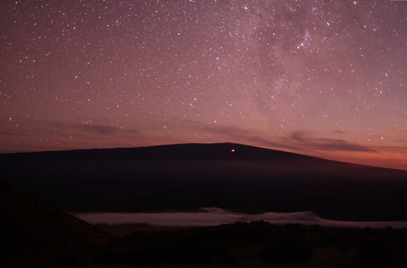 Mauna Loa at night, seen from Mauna Kea (August 8, 2010)