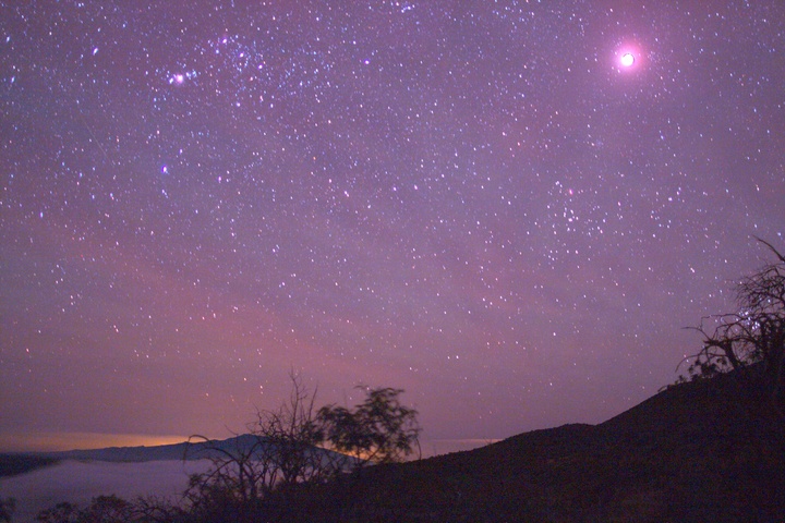 Mauna Loa, clouds, Milky Way and setting moon (Aug 6, 2011)