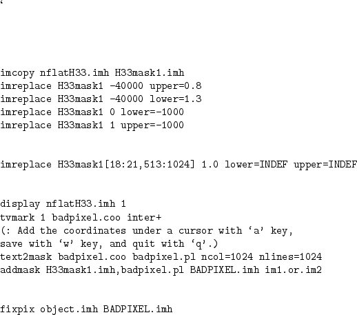 An example procedure for making a bad pixel mask and correcting bad pixels on an object.imh.