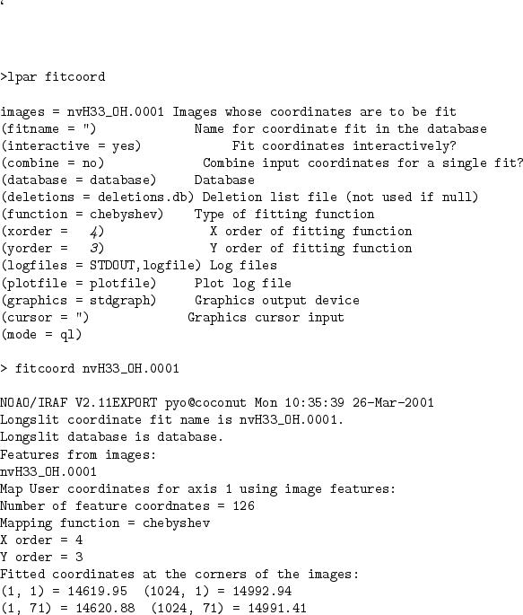 An example of the parameter setting and execution results of the FITCOORDS task.