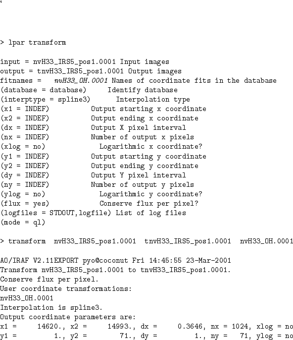 The TRANSFORM task transforms an original image into a uniform grid image in the user coordinates created by the FITCOORDS task.