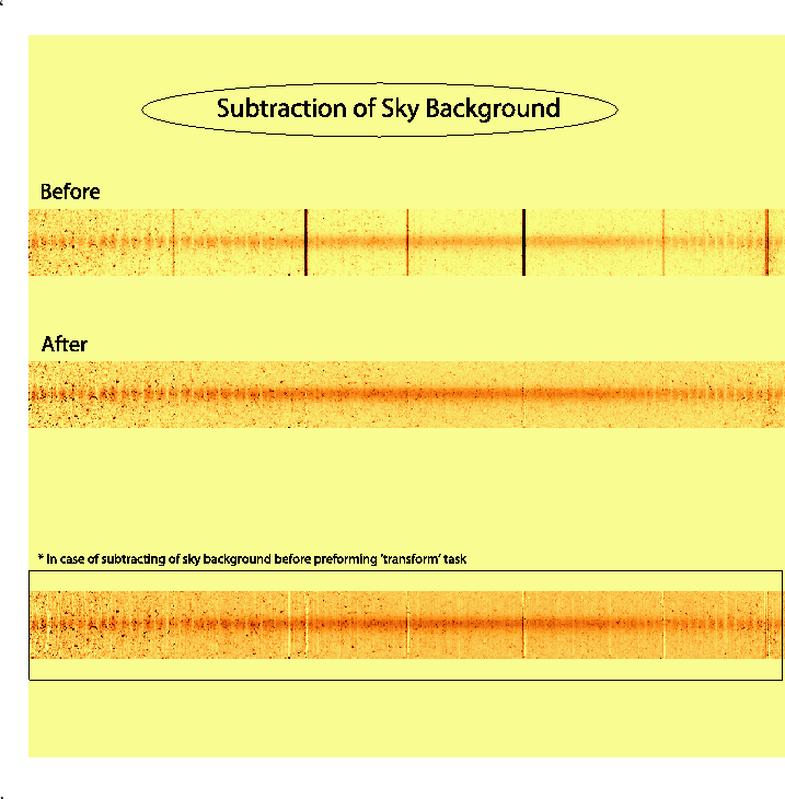Background emission from the sky have to be subtracted from the spectra of objects and standard stars.