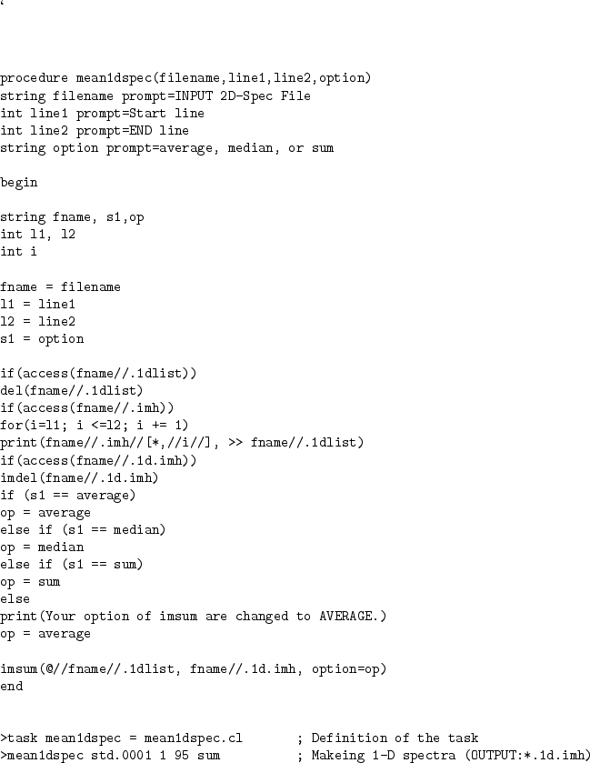 - A one-dimensional spectrum is made by summing up the standard star flux along the spatial direction (see mean1dspec.cl in Figure 46).