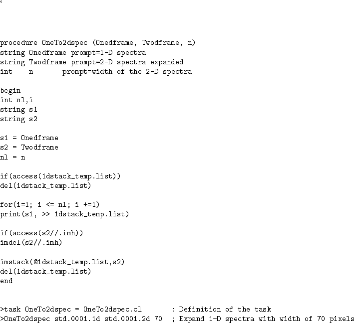 - The one-dimensional spectrum is expanded along the spatial direction to have the aperture width (see OneTo2dspec.cl in Figure 47).