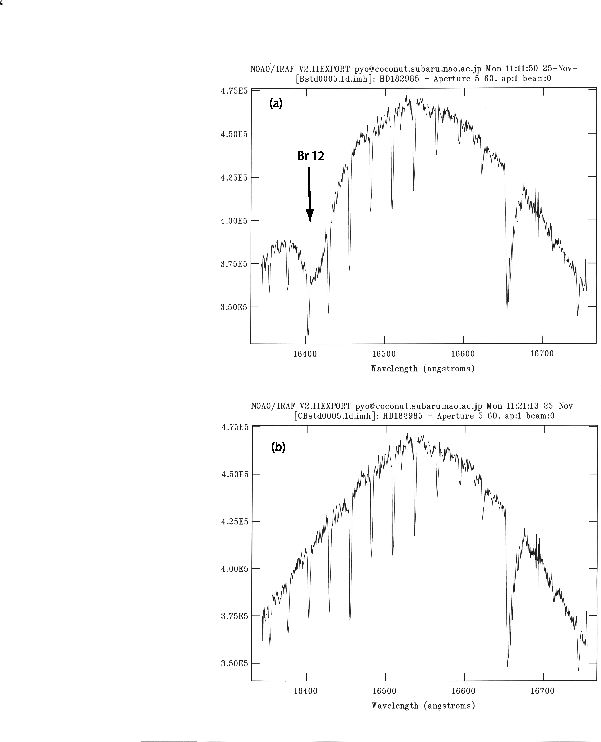 (b) Spectrum after the Br12 absorption line was removed by the SPLOT task.